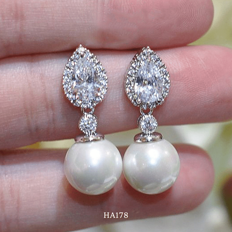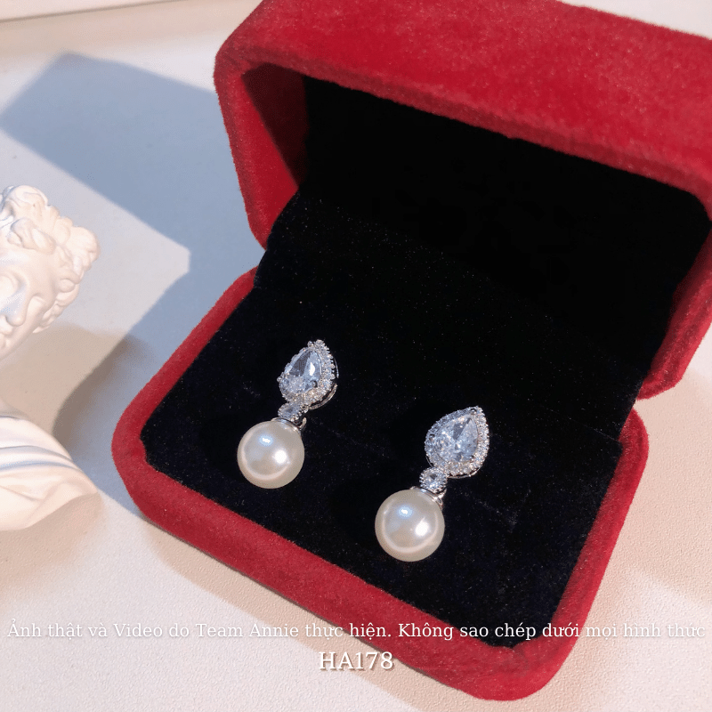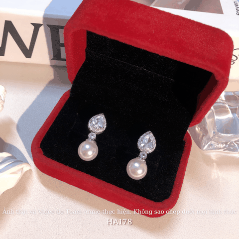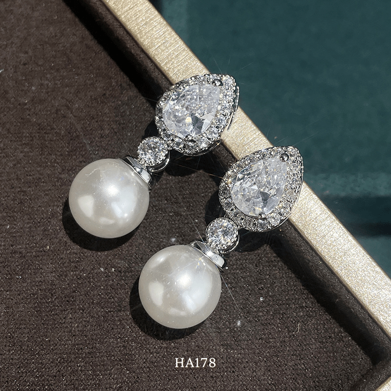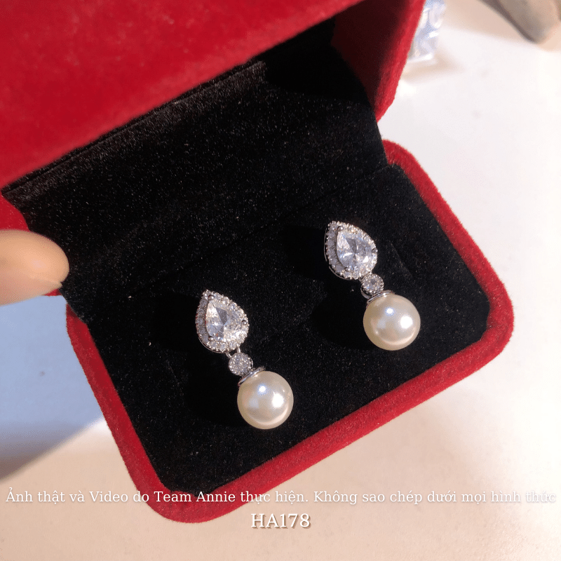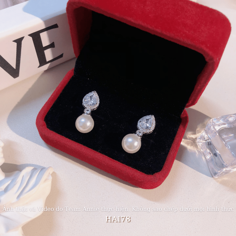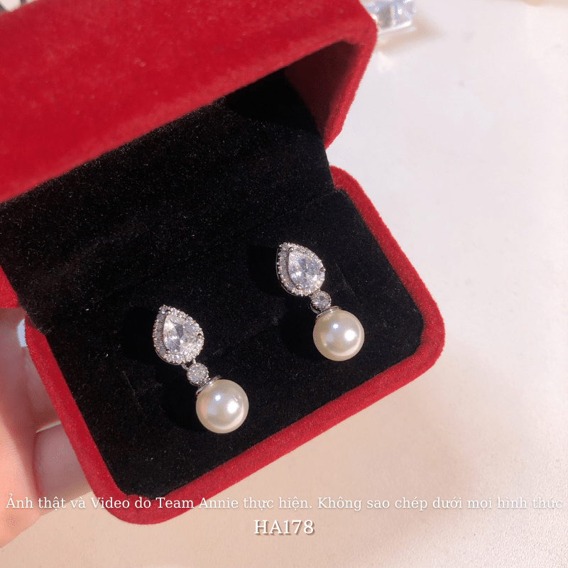 ➤ Tên hàng hóa: Bông tai nữ hình giọt nước đính đá cao cấp phối ngọc trai nhân tạo phong cách cá tính HA178