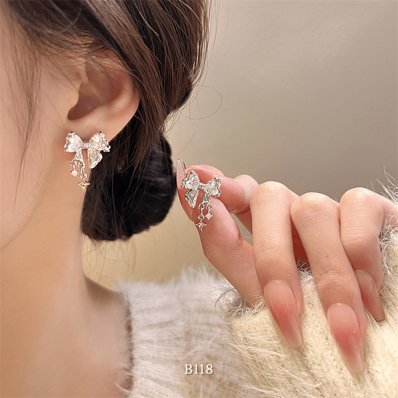 ➤ Tên hàng hóa: Bông tai nữ hình nơ đính đá cao cấp thiết kế sang trọng cá tính phụ kiện thời trang Hàn Quốc B118