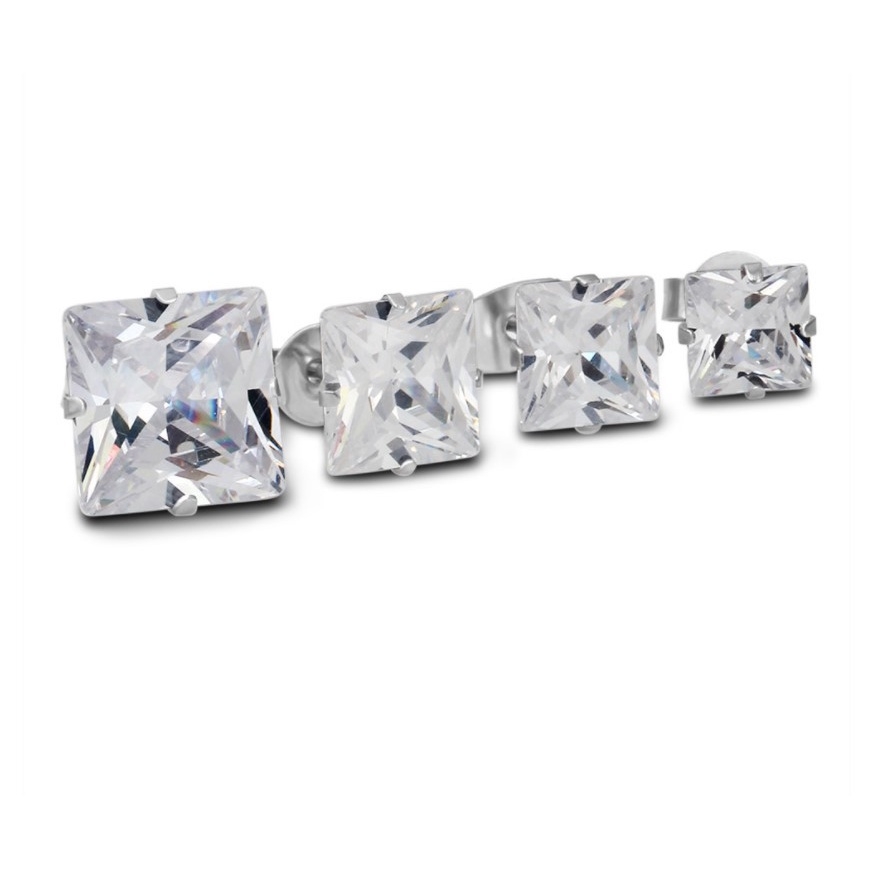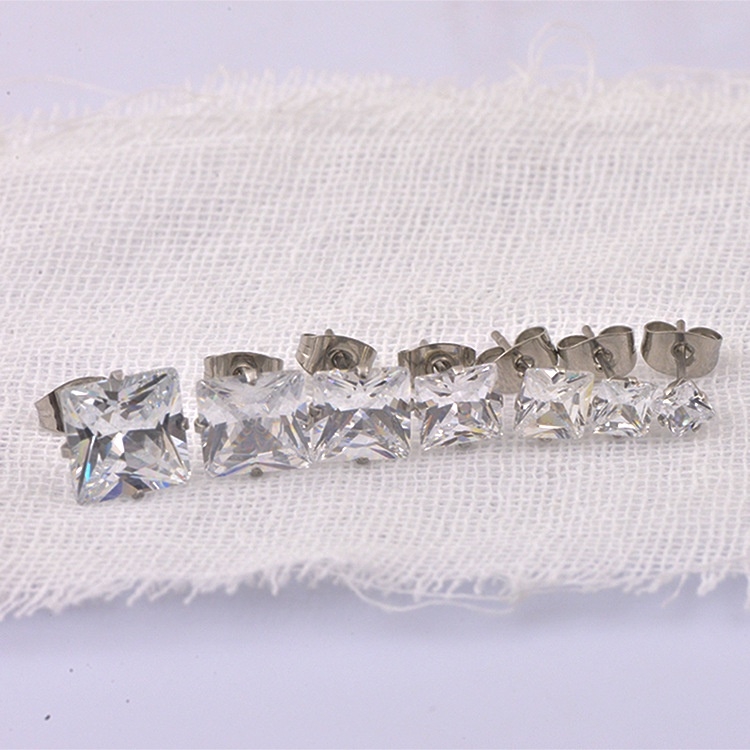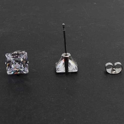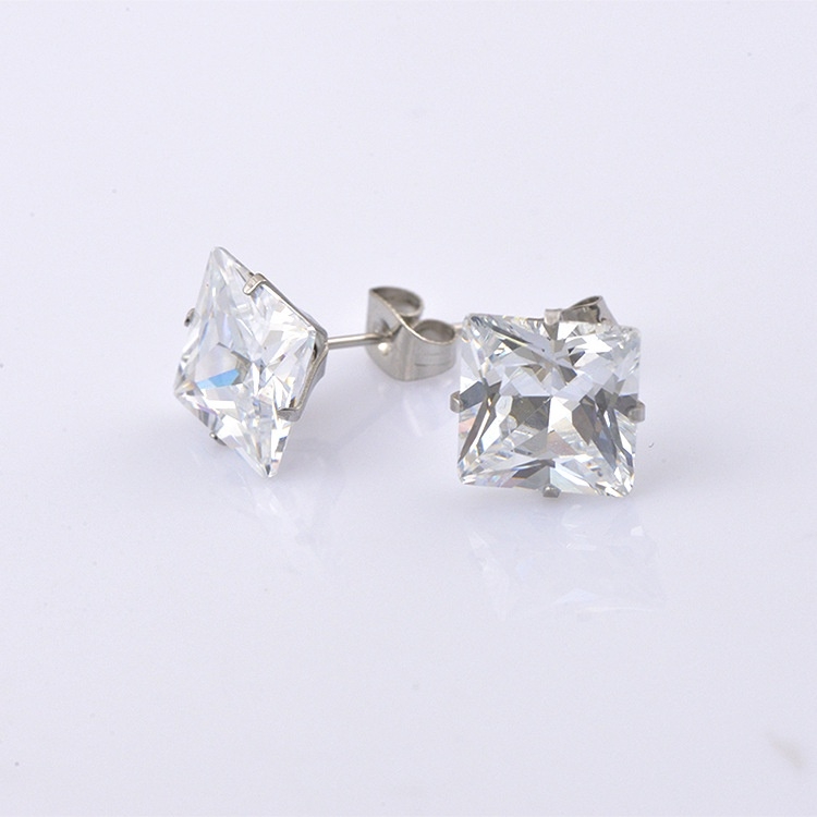 ➤ Tên hàng hóa: Bông tai thép titan không gỉ đính đá hình vuông CT09