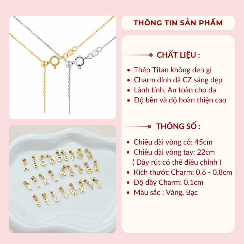 ➤ Tên hàng hóa: Dây chuyền Thép Titan không gỉ chữ VÀNG