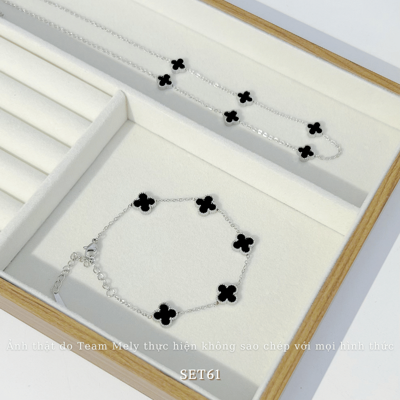 ➤ Tên hàng hóa: [KHÔNG ĐEN GỈ] Dây chuyền thép Titan hình cỏ 4 lá may mắn mặt đen thời trang sang trọng danh cho nữ- TT68