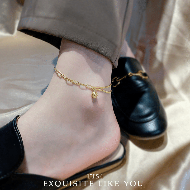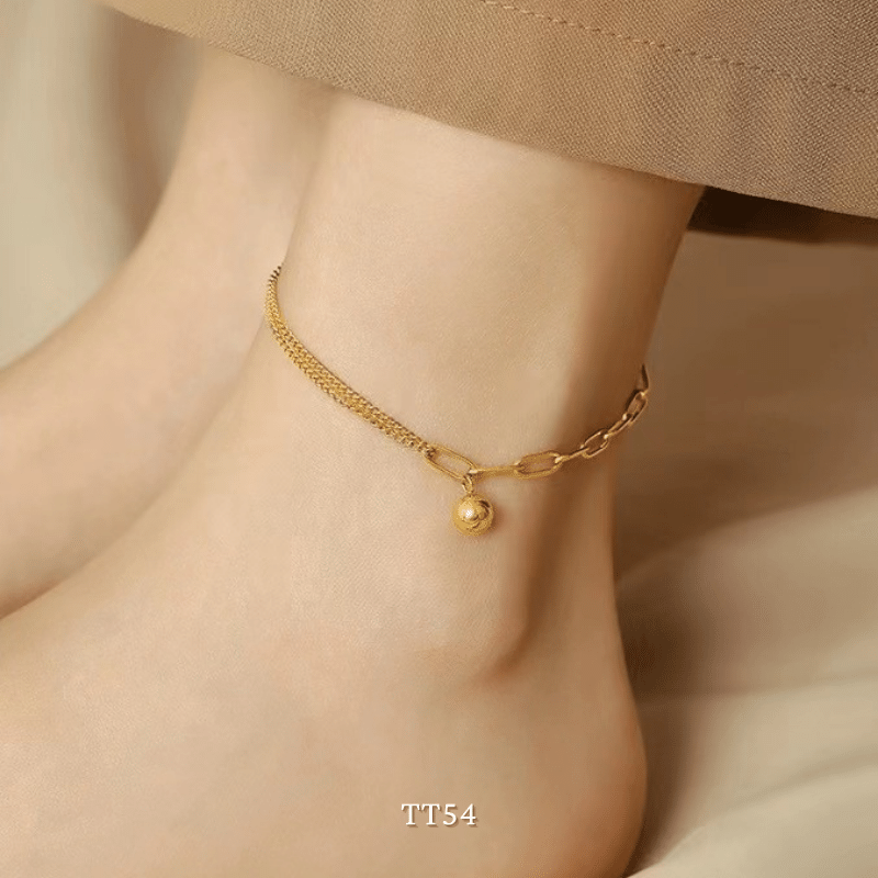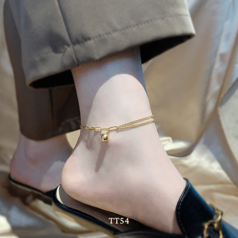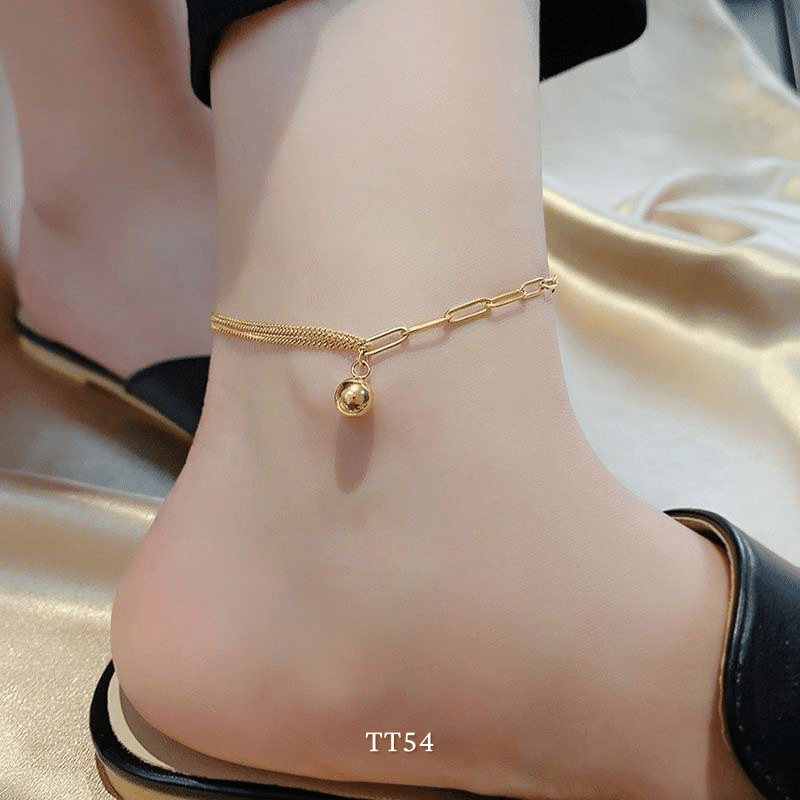 ➤ Tên hàng hóa: [KHÔNG ĐEN GỈ] Lắc chân nữ thép Titan thiết kế dạng bi vàng mắt xích cá tính thời trang Hàn Quốc TT54
