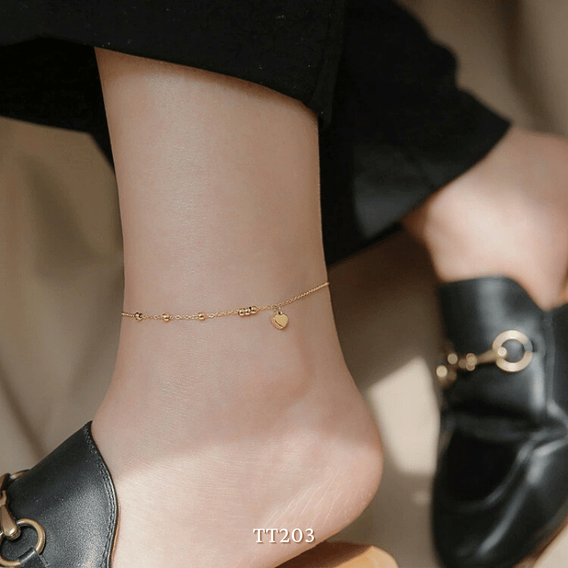 [KHÔNG ĐEN GỈ] Lắc chân hình cỏ 4 lá may mắn mạ vàng bền màu dạng tua rua - TT83