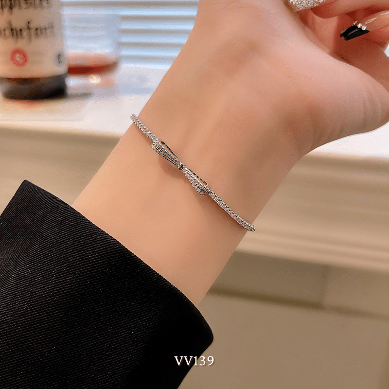 ➤ Tên hàng hóa: Vòng tay nữ mạ bạc cao cấp hình nơ đính đá sang trọng thời trang VV139